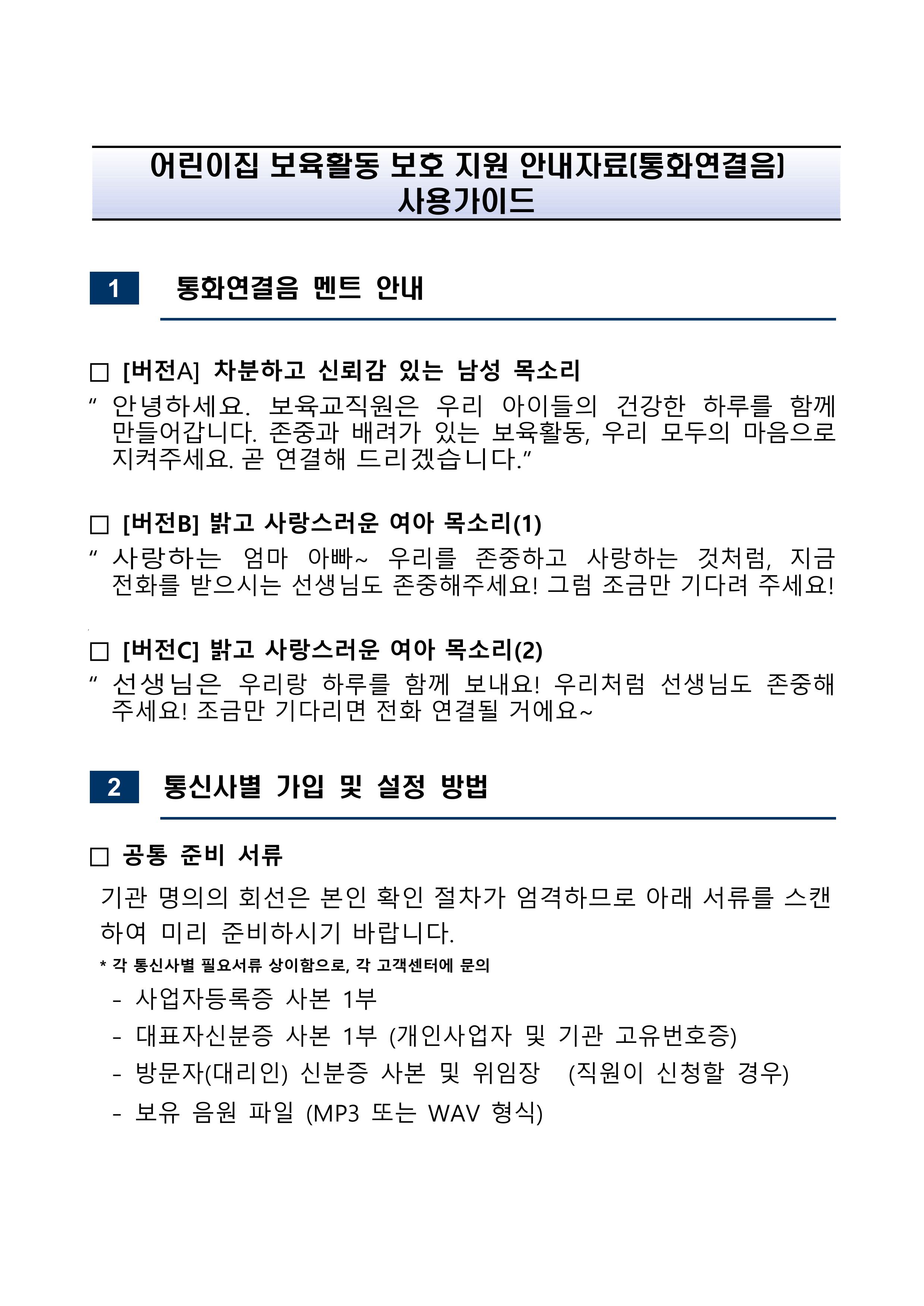 어린이집 보육활동 보호 지원 안내자료(통화연결음 3종)