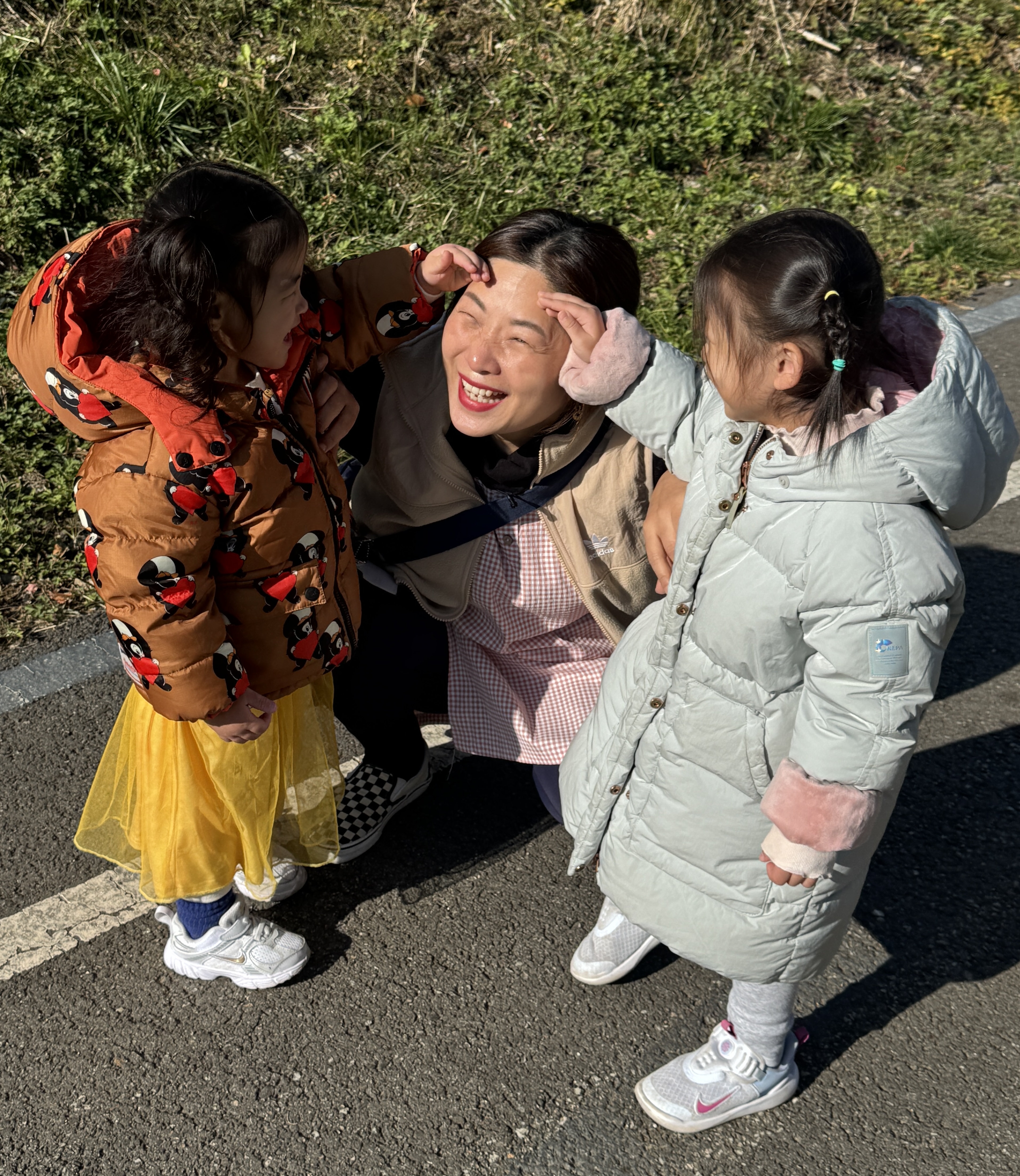산책 중 뜨거운 햇살에 눈을 찡그리며 "아이 눈부셔~" 라는 선생님의 이야기에