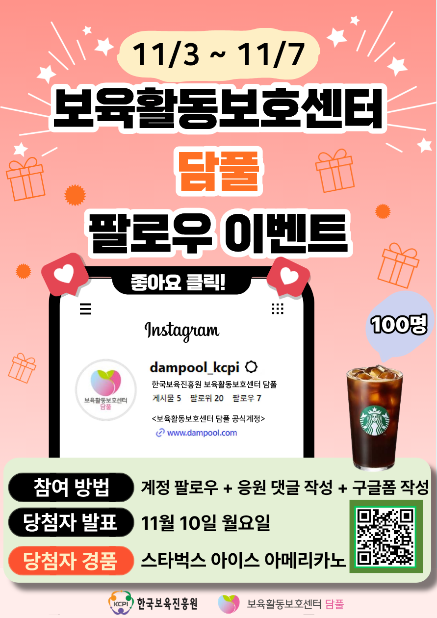 보육활동보호센터 담풀에서 팔로우 이벤트를 진행합니다💖