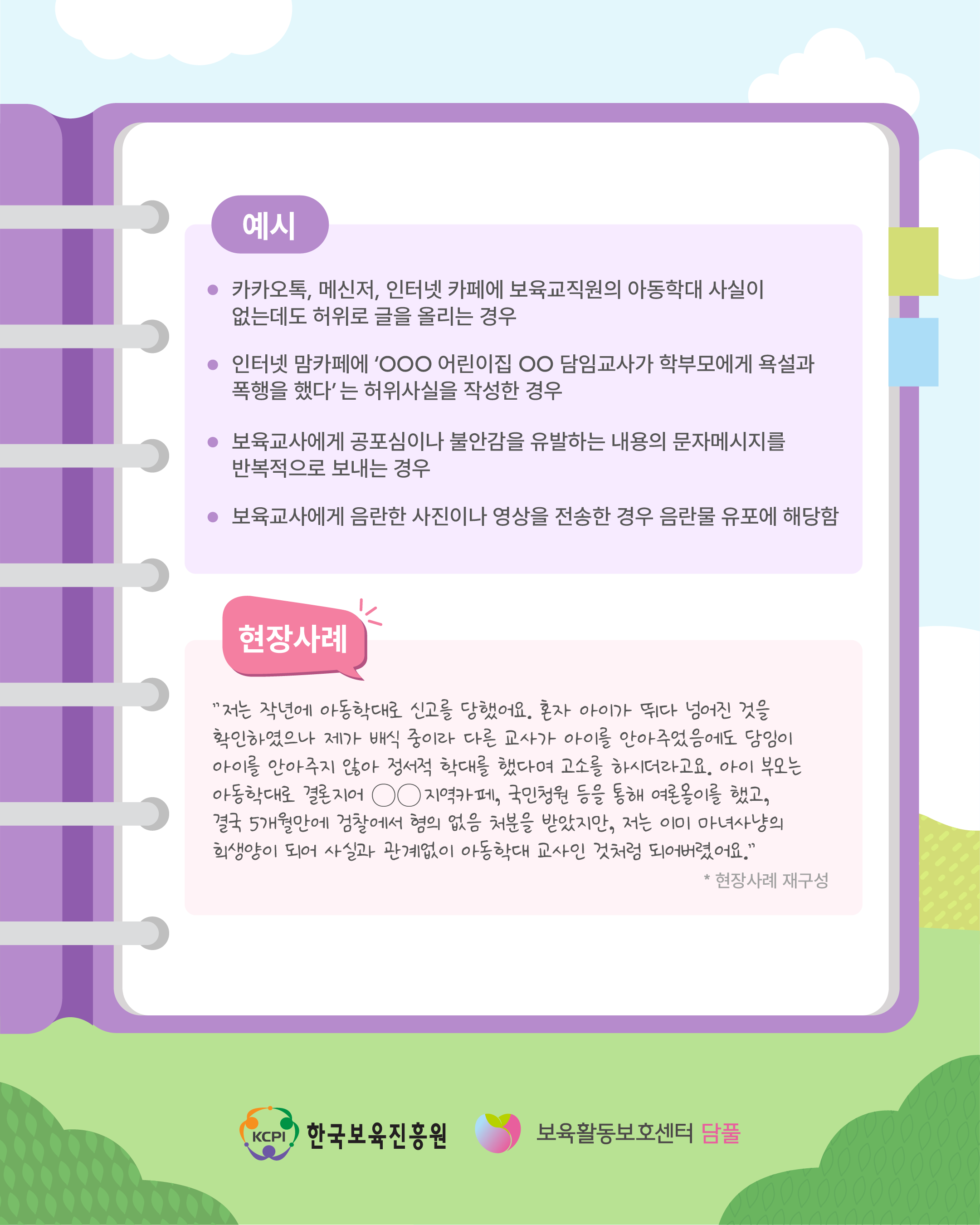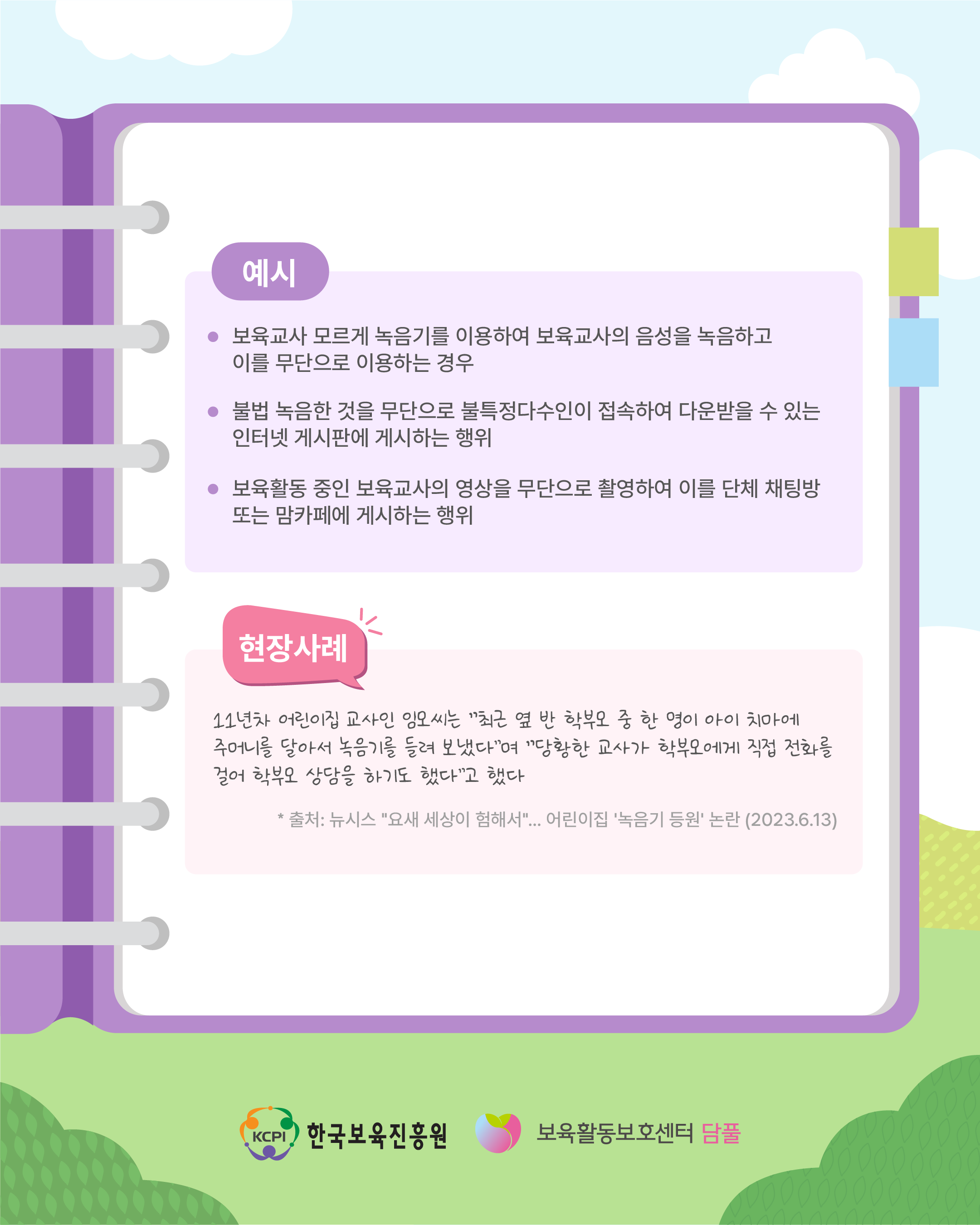 👉🏻 7편 보육활동침해유형 ‘반복적 민원제기 행위·부당업무 강요 행위’도 함께해요🌿