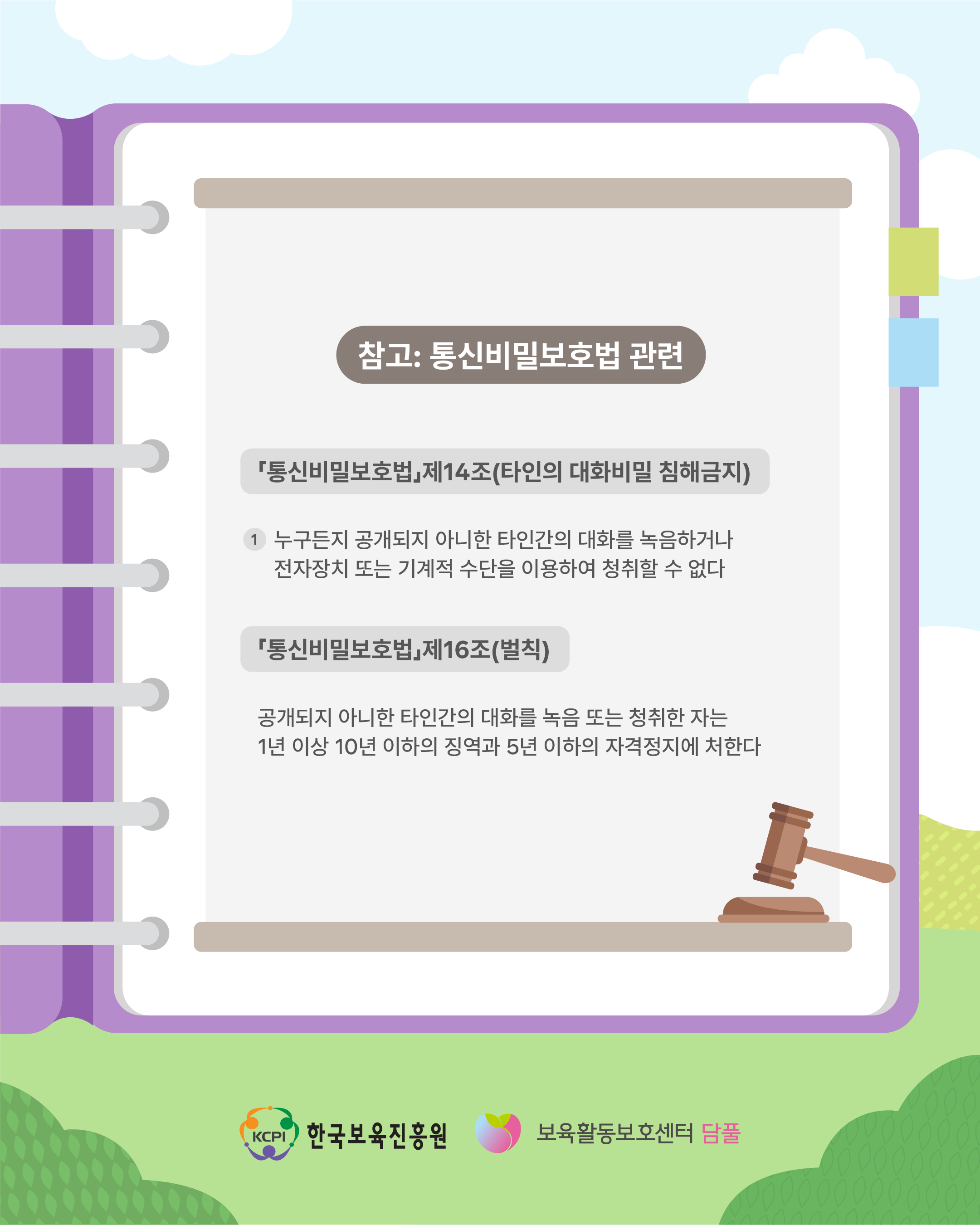 보육활동 중 이루어지는 촬영·녹음·정보의 공유는 교사와 아이의 안전한 하루와 직결됩니다.