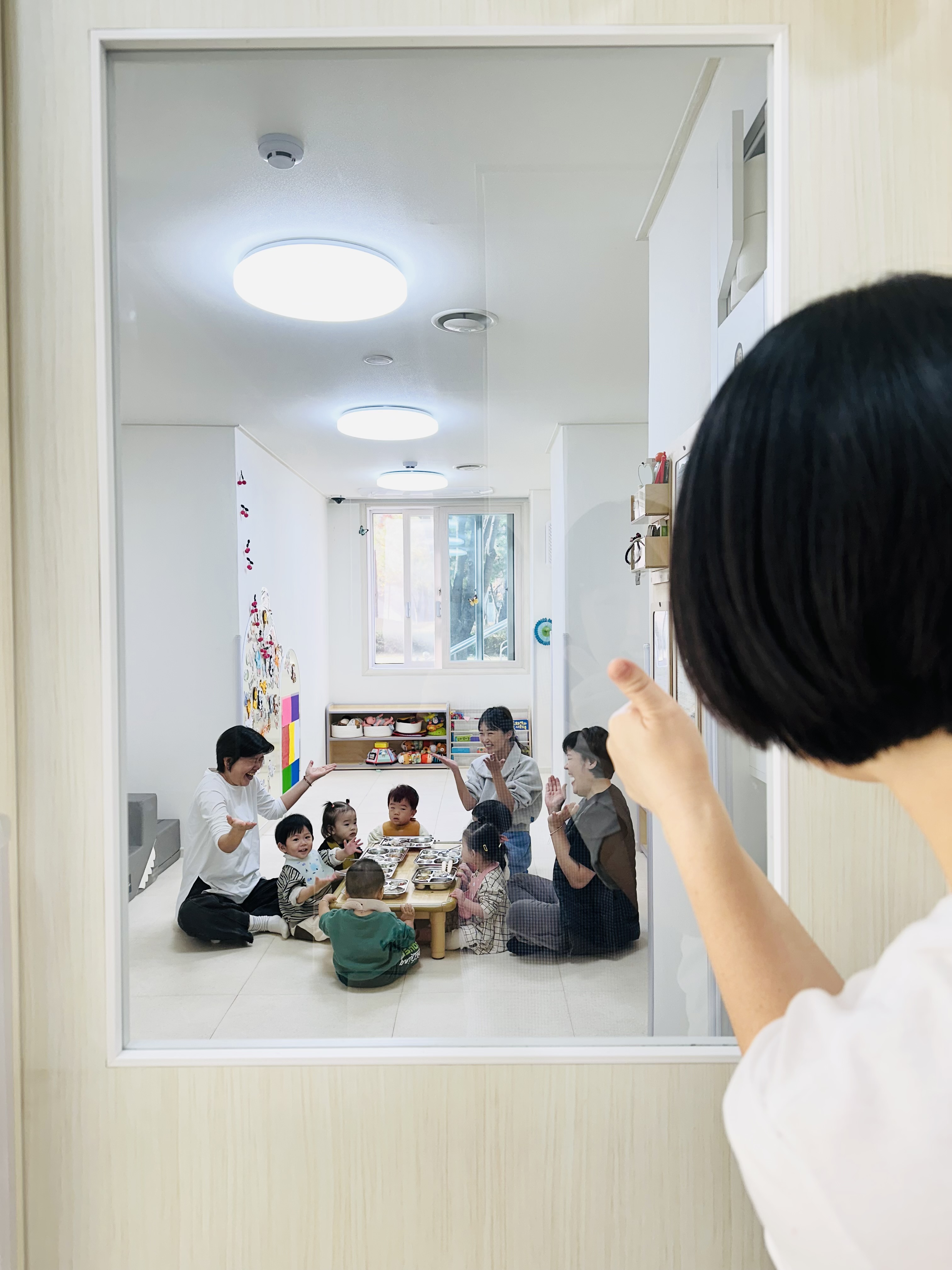 유리창 너머로 조용히 바라보던 부모는 아이의 작은 성장, 그리고 그 성장을 함께 만들어가는 선생님들의 따뜻한 손길에 감동해 천천히 엄지를 들어 올렸습니다.
